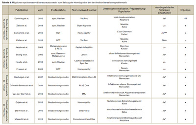 Материал и метод а) основные принципы гомеопатии согласно «Органону врачебного искусства» и современным руководствам; В качестве основной темы рассматривается значение гомеопатии для решения проблемы антибиотикорезистентности на основе репрезентативных метаанализов, систематических обзоров, РКИ, исследований организации медицинской помощи (Versorgungsforschung), а также описания клинического случая согласно упомянутому поиску до августа 2019 года со следующими стратегиями: «((homeopath*[Title/Abstract]) AND (antibiotic*[Title/Abstract]))», «((homeopath*[Title/Abstract]) AND (antimicrobial*[Title/Abstract]) NOT (antibiot*[Title/Abstract]))», «((homeopath*[Title/Abstract]) AND (infection*[Title/Abstract]))», «((homeopath*[Title/Abstract]) AND (respiratory[Title/Abstract]))», «((homeopath*[Title/Abstract]) AND (mastitis[Title/Abstract]))», «((complementary*[Title/Abstract]) AND (antibiotic*[Title/Abstract])», а также быстрый поиск по болезням («инфекции») или показаниям: «острая детская диарея», «острый цистит», «острые диарейные расстройства», «острые фебрильные инфекции», «острая лихорадка», «острые респираторные заболевания и жалобы на уши», «острый ринит», «острый ринофарингит», «острый синусит» или «homeopathy AND infections» (91).