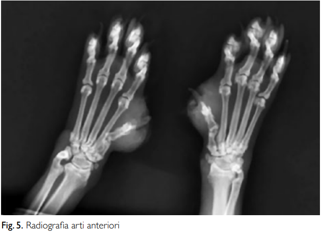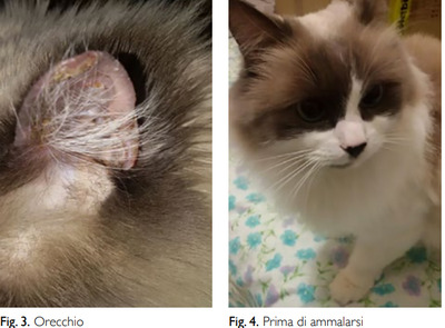 ВВЕДЕНИЕ: Мы представляем клинический случай листовидной пузырчатки, редкого хронического аутоиммунного заболевания у кошек. Этиология: Это везикобуллезное заболевание кожи, гистологически характеризующееся внутриэпидермальным акантолизом (разрывом кератиноцитов). Иммунологически заболевание обусловлено отложением аутоантител к десмосомам в межклеточном пространстве эпидермиса, что приводит к отслоению эпителиальных клеток и образованию везикул. Поражения обычно состоят из буллезных пузырьков и пустул, которые развиваются в покрытые коркой эрозивные поражения. Они, как правило, появляются одновременно на разных участках тела. Наиболее типичные поражения находятся на морде, голове, ушных раковинах, лапах и подушечках пальцев. Поражения, как правило, двусторонние и симметричные. Средний возраст начала заболевания составляет 7 лет. Небольшая распространенность наблюдается у кошек. Триггерами, описанными в литературе, являются реакции на лекарства, вакцины, сопутствующие заболевания и стресс. Диагноз ставится клинически (появление поражений), цитологически и гистологически с наличием акантолитических клеток. Аллопатическое лечение заключается исключительно в иммуносупрессии. Оно включает использование кортикостероидов и нестероидных иммуносупрессивных препаратов (циклоспорин, хлорамбуцил), как по отдельности, так и в комбинации, обычно продолжаемых пожизненно. Также упоминается хризотерапия с введением ауротиоглюкозы. Согласно литературным данным, выживаемость собак составляет от 40% до 71% после 5-6 лет наблюдения. Сложность, связанная с этим аутоиммунным заболеванием, обусловлена главным образом индивидуальной чувствительностью животного к побочным эффектам фармакологической терапии (сахарный диабет, инфекции, а также воспаление мочевыводящих путей, заболевания печени, угнетение костного мозга). Однако сообщалось о частых рецидивах, особенно связанных с попытками снизить дозировку препаратов. Эвтаназия наблюдалась в 10% случаев из-за неэффективности терапии, инфекций или вторичных патологий. (1, 2, 3) В нашем клиническом случае после неэффективности классического лечения, которое было впоследствии приостановлено, была достигнута стойкая ремиссия с помощью одной лишь гомеопатической терапии. Клинический случай представлен в соответствии с рекомендациями Ca.Re.Vet по описанию случаев. (4)